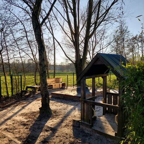Kom aan boord ligt letterlijk in het groen en deze omgeving biedt veel mogelijkheden om te spelen in en te leren vanuit de natuur.